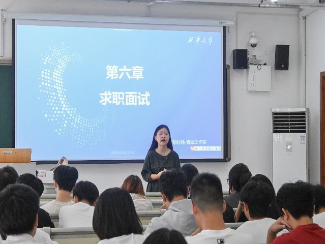 材料学院袁国才老师帮助同学们了解当前的就业形势和各大公司的面试要求。除此之外袁国才老师针对学生们的前途规划也提出了建议。