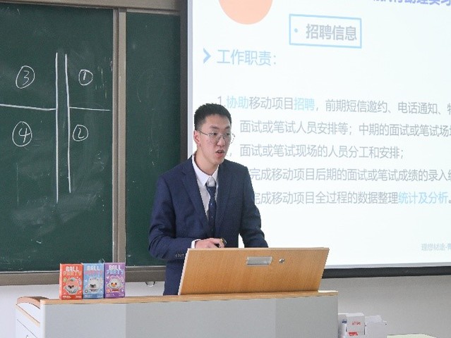 面试分为三大部分,其一是学生上台进行情景式面试,这不仅考验了学生对于信息的提取能力还帮助了学生发掘自我优势。