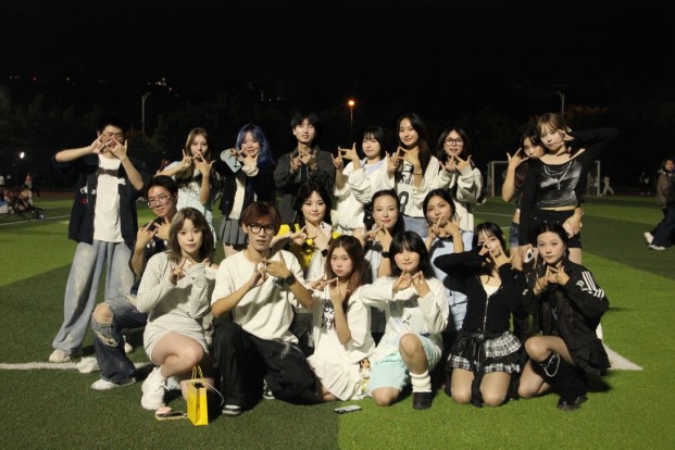 夜幕降临,草坪上的串灯一一亮起,轻快的音乐随风飘扬。同学们身着舒适的休闲装,伴随着随机舞蹈音乐,自由展现舞姿。除了爵士舞的灵动、街舞的奔放,热门男团的刀群舞、女团的甜美元气舞成为当晚的“流量焦点”——社团成员为大家展示《style》的欢快灵动、《killin’it》的热烈帅气,不少同学跟着节奏整齐划一地摆动身体,模仿偶像舞台上的飒爽姿态,瞬间点燃全场热情。同学们脸上洋溢着自信的笑容,熟练的舞者则尽情舒展身姿,用流畅的动作传递着对舞蹈的热爱,欢声笑语回荡在校园夜空,浓厚的欢乐氛围感染着每一个人。