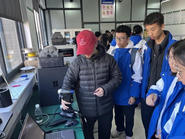 实践操作环节成为整场活动的核心亮点,志愿者谯宇帆、张静、刘俊箐、漆卓豪、杨好、杨延组成专业指导团队,全程以耐心细致的态度陪伴同学们完成3D打印全流程体验。面对初次接触专业设备的中学生,志愿者杨延通过分组演示,清晰拆解了三维建模软件的基础操作逻辑,从界面功能介绍到简单图形绘制,再到创意设计的数字化转化,每一步都配合实例讲解,确保同学们理解如何将脑海中的想法变成电脑里的数字模型。针对逆向工程环节,志愿者漆卓豪手把手指导大家操作扫描仪,演示如何捕捉实物的三维数据,实现精准“复刻”,不少同学在志愿者的帮助下,成功扫描了自己的小物件,亲身感受数字化技术的神奇。
