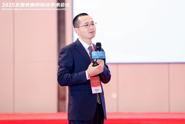 大会报告分为上下两个半场,分别由叶军教授和袁艳平教授主持。来自清华大学、中国民用航空飞行学院、湖北大学、北京航空航天大学及英国诺桑比亚大学的五位知名学者先后作主旨报告。清华大学姚学峰教授围绕“大型民机增升装置结冰增量载荷实验及分析”分享了其在航空结冰机理与实验方法方面的最新研究;中国民用航空飞行学院何强教授以“飞行器超疏水表面防除冰研究”为题,探讨了超疏水材料在航空防冰中的应用前景与技术挑战;湖北大学郭志光教授从“防冰除冰表面中的表面张力”切入,阐释了表面物理化学在防冰设计中的关键作用;北京航空航天大学陈华伟教授系统介绍了“航空用低热节能防冰涂层技术研究现状与趋势”;英国诺桑比亚大学傅永庆教授则聚焦于“薄膜基声表面波在防冰及除冰的应用”,展示了跨学科技术在该领域的创新潜力。五场报告内容前沿、视角多元,引发了与会者的热烈讨论与深入交流。