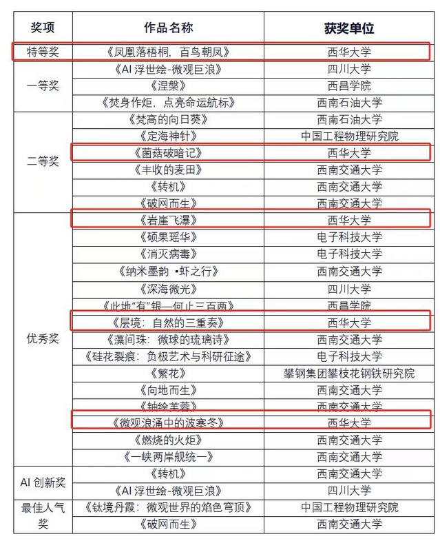 近日,“ '观微知著·共享致远' 2025年大型仪器设备共享前沿论坛暨第四届四川省电子显微摄影大赛”结果公布。西华大学材料科学与工程学院学生表现突出,共获得特等奖1项、二等奖1项、优秀奖3项,其中特等奖作品《凤凰落梧桐,百鸟朝凤》受到评审专家一致好评。