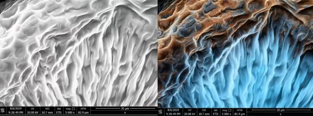 这些获奖作品主题鲜明,视角独特,从材料微观结构、生物组织形貌到自然矿物纹理,生动展现了微观世界的科学之美与艺术之趣。同学们通过电子显微镜,将肉眼不可见的细微结构转化为富有表现力的影像,体现了扎实的实验技能和良好的综合素养。