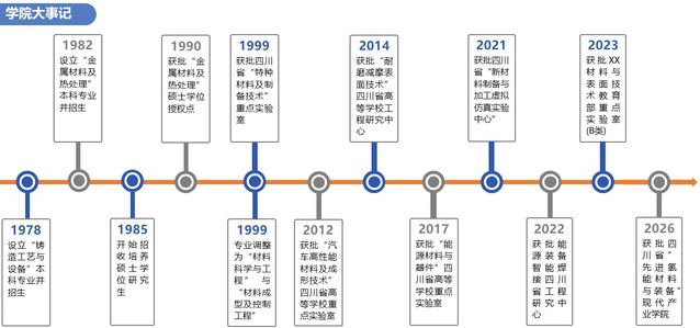 学院源于1978年四川农机学院开设的“铸造工艺及设备专业,拥有40余年硕士培养经验和学科积淀,现已发展成为西南地区材料领域重要的人才培养和科学研究基地,研究方向涵盖结构功能一体化材料、新型储能、表界面工程、先进精密制造、高端复合材料等前沿领域,紧密对接国家和地方重大战略需求。