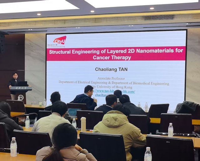 2026年1月16日下午16:30,材料科学与工程学院在行政楼101会议室举办学术报告会,特邀香港城市大学电机工程系与生物医学工程系终身副教授、博士生导师谭超良博士担任主讲嘉宾。本次报告题目为《二维层状纳米材料的结构工程及抗肿瘤生物应用》,报告由陈宝书副院长主持,学院师生100余人到场聆听交流。